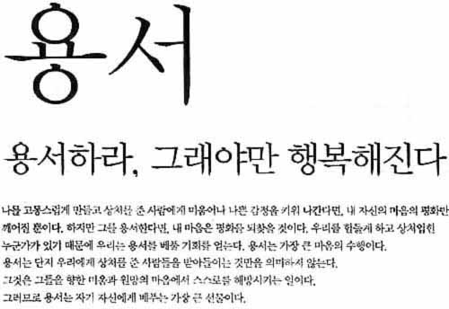 Çàº¹ÇØÁö±â À§Çؼ­ ¿ë¼­Ç϶ó´Â Çã¸ÁÇÑ ´äÀ» ÁøÁöÇÏ°Ô ¸»ÇÏ´Â Á¾±³ÀÎÀÇ ¸»ÀÔ´Ï´Ù.
